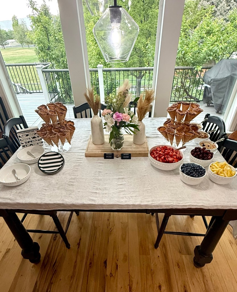 After the meeting, we had a small brunch open house at our home for family and friends. It was so nice to be able to visit a little longer with our fantastic friends and relatives. We served fruit cones and sweet breads with juice, and we ended up with lots of extra food, which we mostly gave away.
