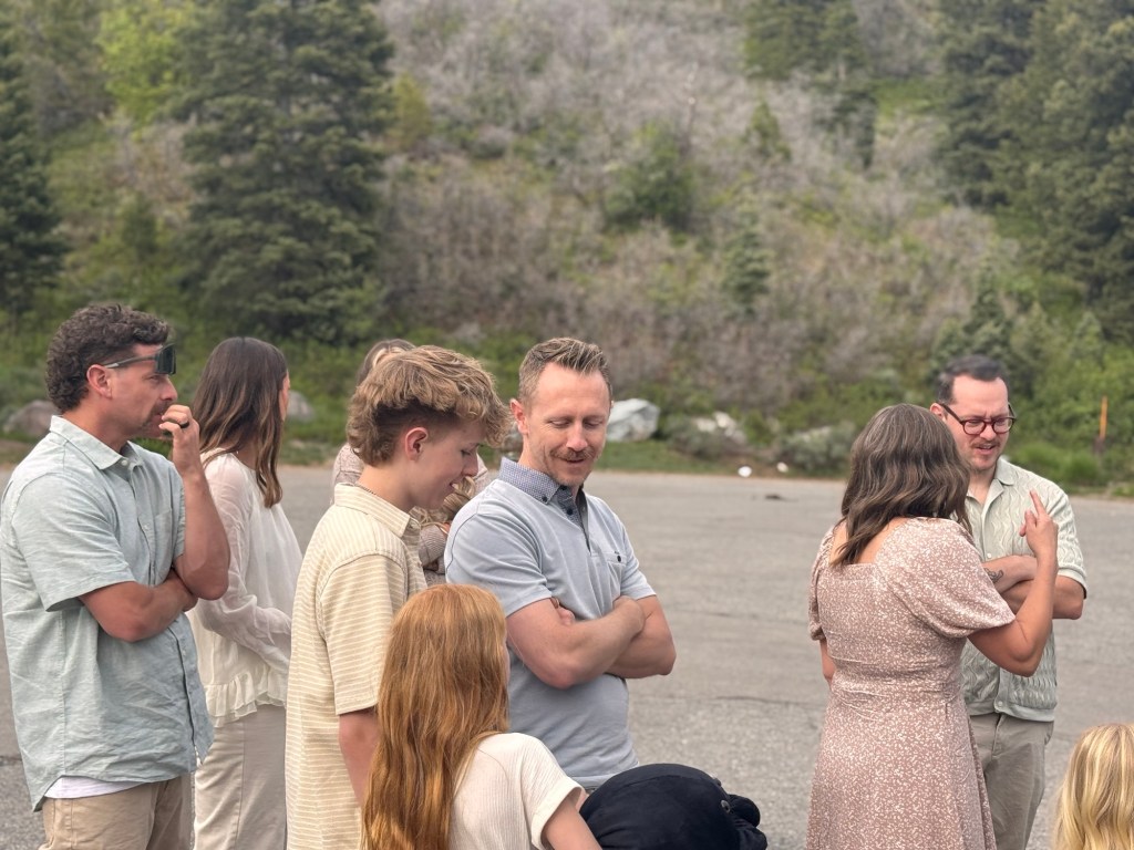 Saturday evening, we gathered all the family up American Fork canyon above Tibble Fork Reservoir for family pictures. While that sounds like a relatively simple process in principle, in practice, it was anything but simple. Trying to coordinate the schedules and activities of 22 people, find a time that works with the photographer, and get everyone’s color-coordinated outfits arranged was quite a complicated process, and involved rescheduling at least three different times in the end. Saturday evening was our final option and fortunately it worked out. The weather was perfect and pleasant, and the setting was gorgeous. Everyone coordinated well and we just loved being together.